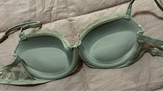 Sujetador de color verde, usado solo un par de veces. No me sé la talla y es marca blanca - Diseño con tirantes. - Cierre de corchetes.