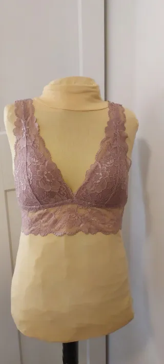 Sujetador tipo camiseta de encaje en color rosa. Talla L.