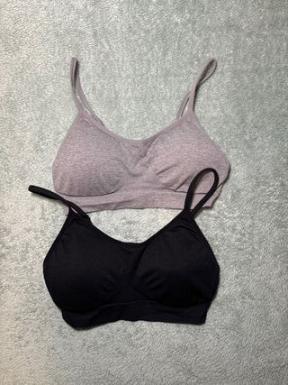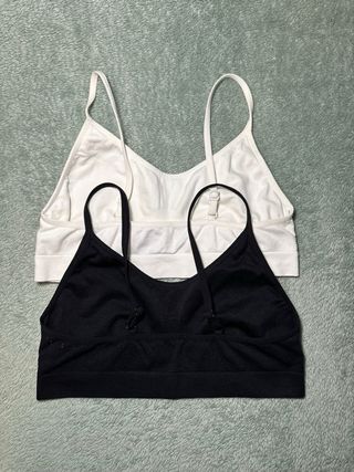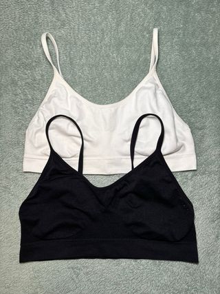 Pack de dos sujetadores deportivos cómodos y versátiles. - Diseño sin costuras. - Tirantes finos ajustables. - Banda elástica inferior para mayor sujeción.