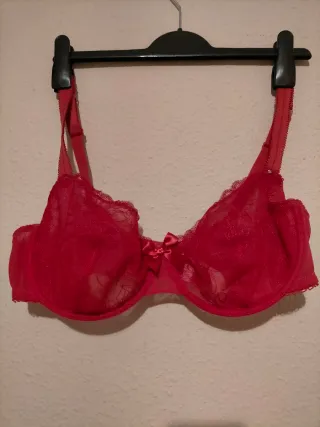 Recogida en mano Málaga Dinero físico Sujetador de color rojo con detalles de encaje.(No trajo etiqueta pero está nuevo sin estrenar) - Sin relleno. - Tirantes ajustables. - Cierre de corchetes.