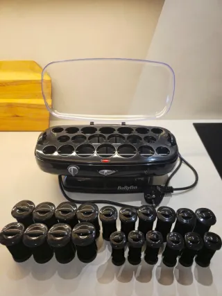 Set de 20 rulos térmicos de Babyliss. Están casi nuevos y son perfectos para crear rizos y ondas. - Incluye 20 rulos térmicos de cerámica. - Tamaños: 8 grandes de 32mm, 6 medianos de 26mm y 6 pequeños de 19mm. - Incluye 17 pinzas grandes para sujetar el pelo - Calentador de rulos incluido. - Temperatura variable desde 90°C a 140°C.