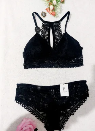 Precioso conjunto de lencería de encaje stretch en negro 🖤 Sujetador súper suave y muy cómodo con ligero relleno, sin aros ni varillas Estilo bralette Tirantes ajustables Chic, lovely, superbe 🥀✨️🥀✨️🥀 #blacklacelingerieset #lingeriedentellenoire #conjuntodelenceria #lenceriaencajenegro #biancheriaintimanera #encajenegro #encajenegro Conjunto de lencería de encaje. - Talla M/L. - Diseño con detalles de encaje. - Incluye sujetador y braguita.