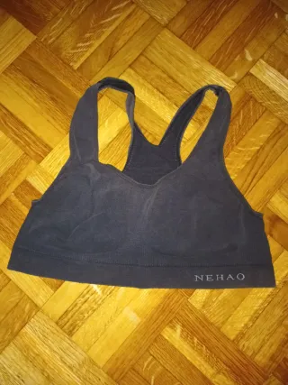 Camiseta de tirante para hacer deporte con sujetador incorporado. Es cortita y queda ajustada. Buen estado
