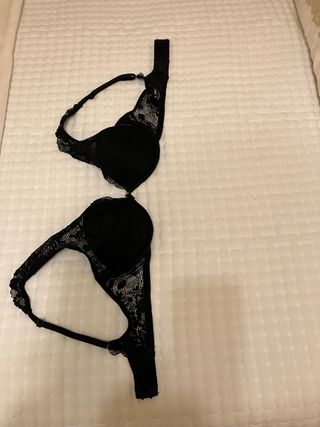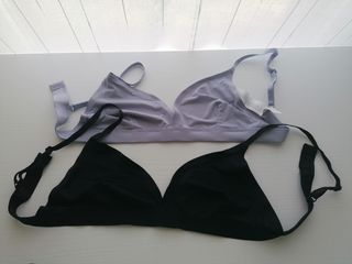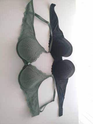 Sujetadores de los cuales tres están a estrenar (solo puesto una vez el negro de la segunda foto). Verde las tiras se pueden cruzar y el negro de encaje incluye tiras aunque no están en la foto.