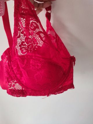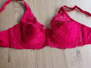 Sujetador rojo con puntilla. Las asas no son extremadamente finas para evitar que se claven en tus hombros. Decoradas delicadamente. Completamente nuevo, sin estrenar!!