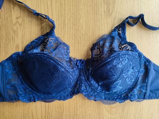 Sujetador 100C en color azul marino con puntilla. Las asas no son extremadamente finas para evitar que se claven en tus hombros. Decoradas delicadamente. Completamente nuevo, sin estrenar!!