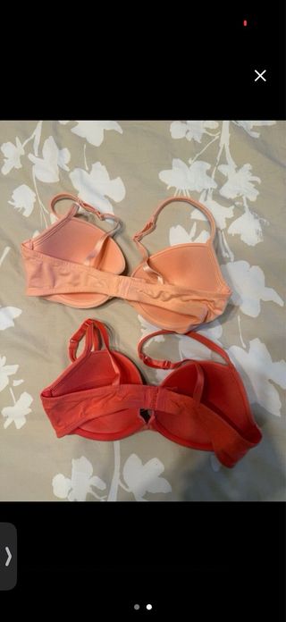 Conjunto de dos sujetadores. - Talla 90B. - Colores naranja y rosa.