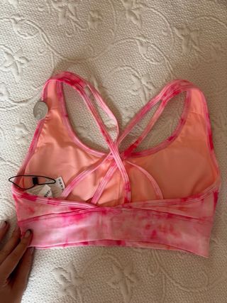 Sujetador deportivo colorido - Talla S. - Estampado tie-dye en tonos rosas y rojos. - Tirantes cruzados en la espalda.