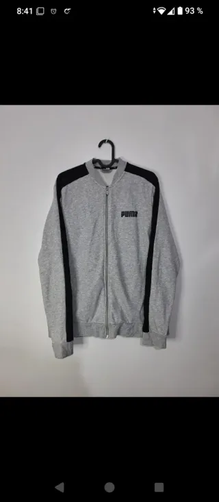 Chaqueta deportiva Puma con diseño moderno. Es una XL pequeña, equivale más a una M/L - Color gris con detalles en negro. - Cremallera frontal. - Cuello redondo.