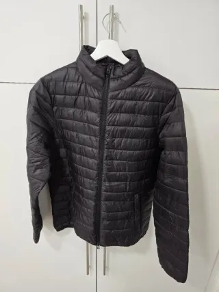 Chaqueta acolchada con cuello redondo y cierre de cremallera. - Diseño acolchado horizontal. - Bolsillos laterales con cremallera oculta. - Puños elásticos.