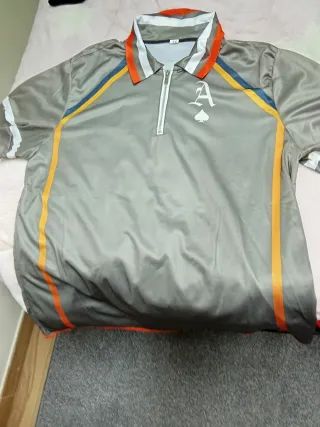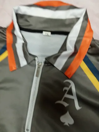 Polo de manga corta con detalles de color. - Cuello tipo polo con cremallera. - Diseño con líneas de color naranja y azul. - Logo de A con una pica en el pecho.