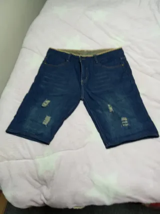 Pantalón corto de jean con un estilo moderno y desgastado. - Diseño con rotos. - Cintura con trabillas para cinturón. - Bolsillos delanteros y traseros.
