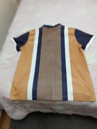 Camiseta del Ajax de Ámsterdam en talla L. Diseño deportivo con detalles característicos del club. - Diseño a rayas verticales. - Detalles en color rojo en los hombros. - Escudo del club en el pecho.
