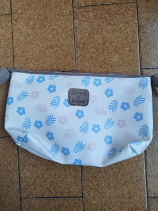 Neceser grande con un diseño encantador de Stitch y Ángel de Disney. Perfecto para organizar tus esenciales. - Estampado de flores y hojas en tonos azules y rosas. - Cierre de cremallera.
