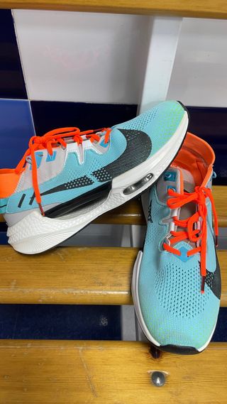 Zapatillas de running en color azul y naranja. - Diseño moderno y ligero. - Suela con amortiguación visible. - Cordones naranjas. - Detalle de logo en el lateral. NO AUTENTIC