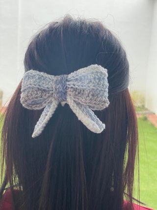 Este coletero de lana está hecho a mano con un diseño de lazo. - Colores: azul, y gris. - Pieza única