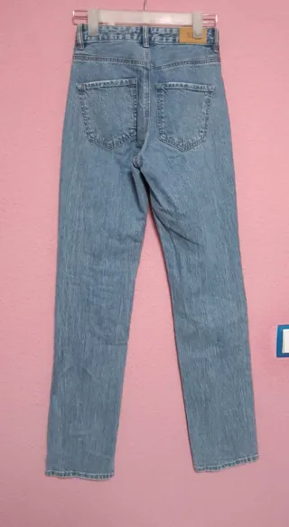 Pantalón vaquero de corte ancho y estilo moderno. - Tejido denim resistente. - Lavado claro con efecto desgastado. - Cintura alta. - Bolsillos delanteros y traseros.