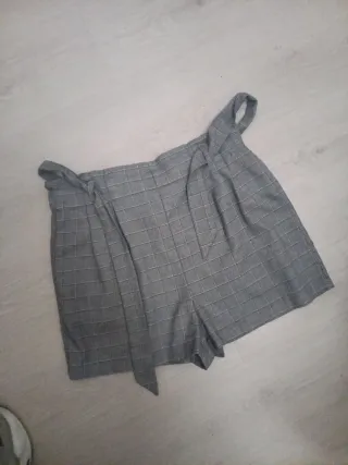 Pantalones cortos de tela con un diseño a cuadros. Varios pregunta antes - Cintura alta con cinturón. - Estilo paperbag. - Dos bolsillos laterales.