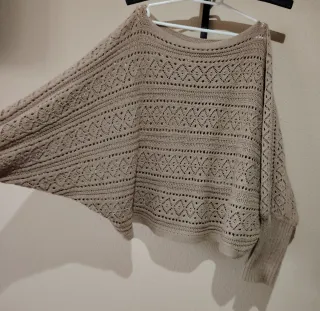 Jersey de punto calado en color beige. Su diseño abierto en los hombros le da un toque moderno y fresco. - Diseño de punto calado con motivos geométricos. - Mangas largas. - Corte holgado.
