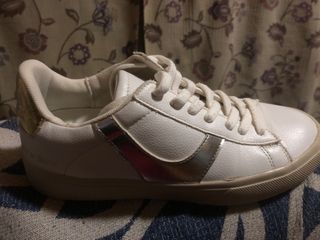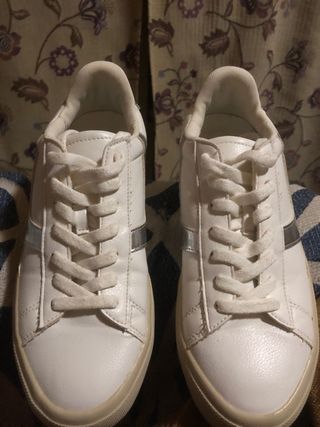Zapatillas deportivas de chica en color blanco con detalles plateados. - Cierre con cordones. - Diseño casual.