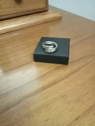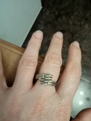 Elegante anillo de acero con detalles en oro de 18 quilates. Diseño moderno y sofisticado. - Material: Acero y oro 18k. - Estado: Nuevo.