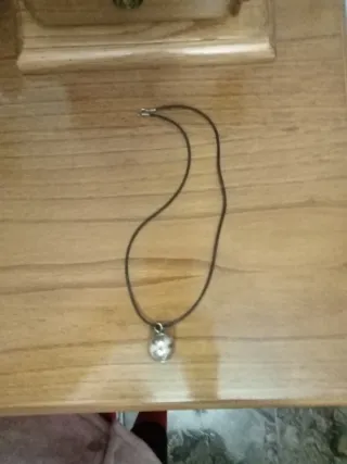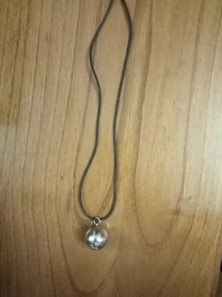 Colgante llamador de ángel con cordón de caucho. - Colgante de plata. - Cordón de caucho negro.