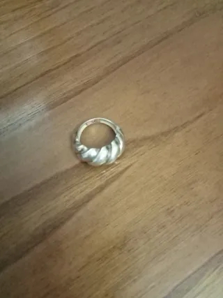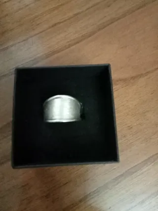 Anillo de plata esterlina con un diseño texturizado y moderno. - Material: Plata esterlina. - Talla: 14 (diámetro interior 19 mm). - Acabado: Mate con detalles pulidos.