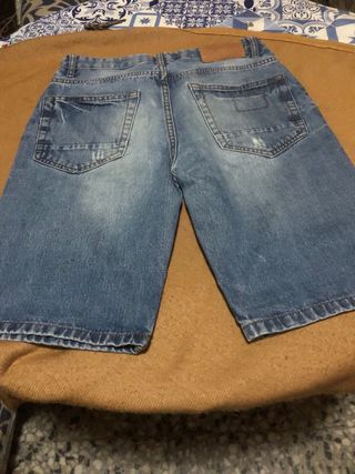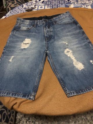 Pantalón corto de chico de la marca Pull&Bear. - Diseño vaquero desgastado. - Detalle de rotos. - Tiro medio.