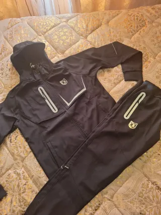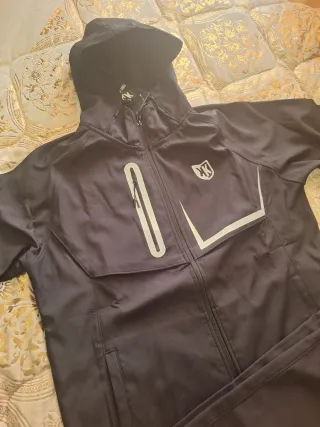 Conjunto deportivo de dos piezas. - Chaqueta con capucha y cremallera. - Pantalón largo. - Diseño con detalles reflectantes. - Logo KK en la chaqueta y el pantalón.