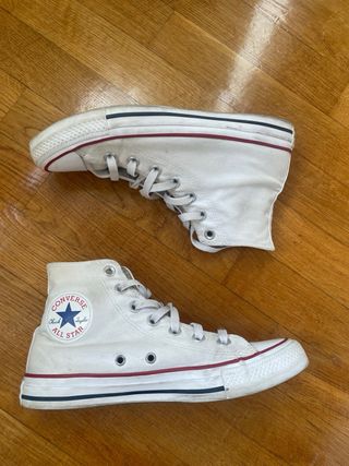 Zapatillas Converse Chuck Taylor de caña alta en color blanco. Un clásico para cualquier ocasión. Usadas pero bien conservadas