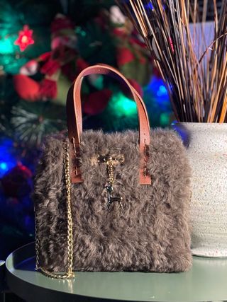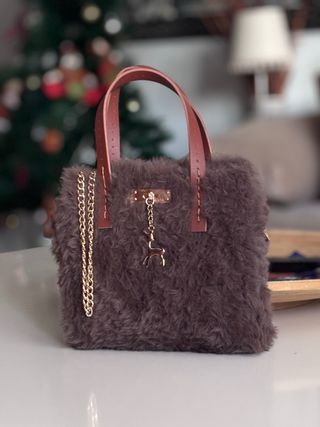Bolso pequeño de pelo sintético en tono marrón. Cuenta con un charm de reno y una cadena dorada. - Material: Pelo sintético. - Color: Marrón. - Adorno: Charm de reno. - Cadena: Metálica dorada.