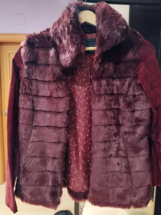 Chaqueta de pelo sintético con mangas de ante. - Diseño con cuello y cuerpo de pelo. - Mangas largas de ante. - Forro interior estampado.
