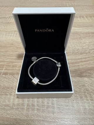 Pulsera original de la marca Pandora, elaborada en plata de ley 925. Incluye 2 charms. - Charm con forma de casa. - Charm con forma de corazón. - Colgante con forma de corazón. - tamaño de 16 cm. - ideal para regalo. - cadena lisa en forma de serpiente.