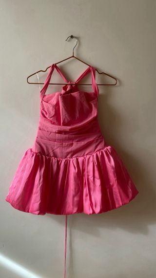 Vestido rosa halter con falda abullonada