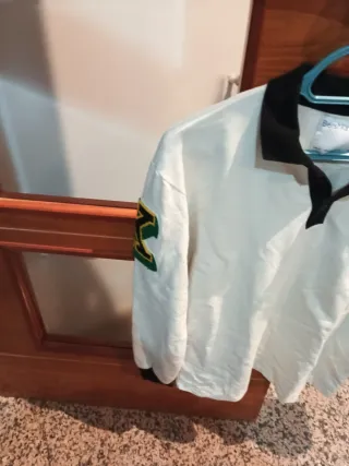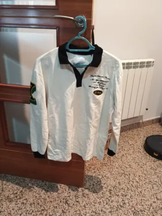 Jersey de manga larga con cuello tipo polo. También vale para talla M - Diseño en color blanco con detalles en negro. - Cuello y puños en contraste. - Estampado gráfico en la parte delantera.