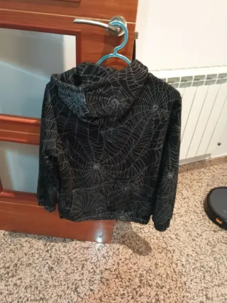 Sudadera con un diseño llamativo de telarañas en toda la prenda. Para M también vale - Estampado de telarañas en blanco. - Capucha. - Bolsillo frontal.