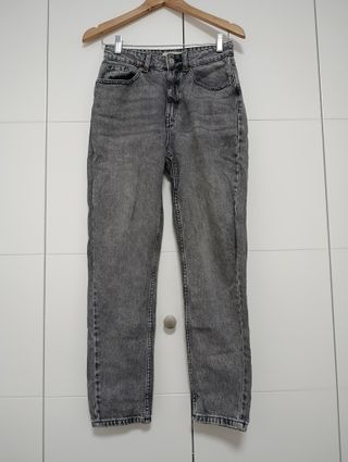 Vaqueros de corte recto en color gris. - Cintura alta. - Lavado a la piedra. - Bolsillos delanteros y traseros. -Un solo uso