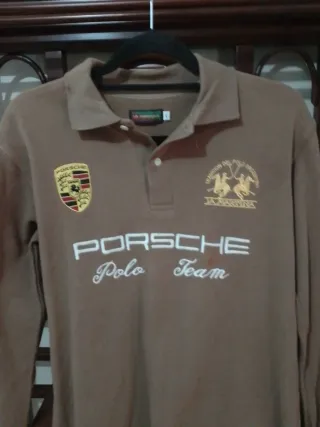 Polo de manga larga de la marca La Martina. - Color marrón. - Logo de Porsche y Polo Team en el pecho. - Cuello tipo polo con botones. Tiene una pequeña mancha, ver foto 5 de ahí su bajo precio