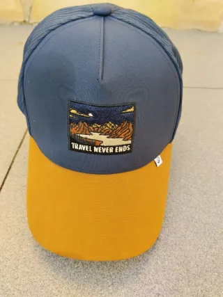 Pack de dos gorras con un diseño moderno y llamativo. - Gorra frontal azul con visera mostaza. - Malla trasera para mayor ventilación. - Parche decorativo en el frontal.