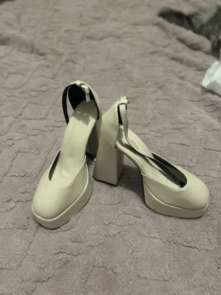 Zapatos de plataforma con un diseño moderno y elegante. - Tacón grueso y cuadrado. - Tira ajustable al tobillo. - Plataforma delantera. - Acabado liso.
