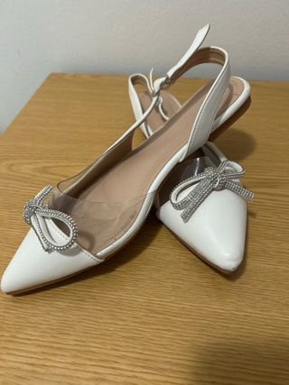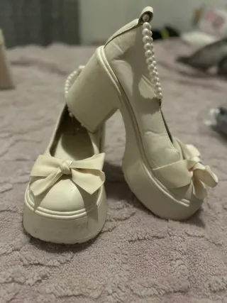 Elegantes zapatos de plataforma con un diseño único. - Detalle de perlas en el talón. - Adorno de lazo en la punta. - Plataforma gruesa para mayor comodidad.