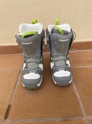 Botas de snowboard Salomon en excelente estado, casi nuevas. La talla se puede ver en imagen. - Color gris y blanco. - Cierre de velcro. - Interior acolchado para mayor comodidad.