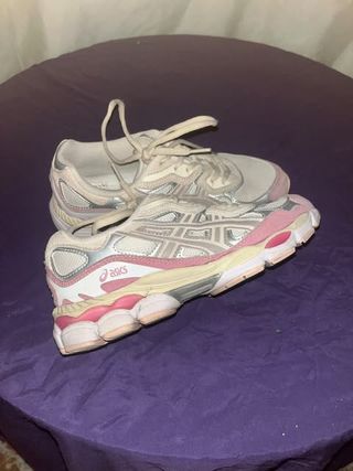 Zapatillas deportivas ASICS con un diseño moderno y cómodo. - Combinación de colores rosa y blanco. - Detalle de logo en el lateral.