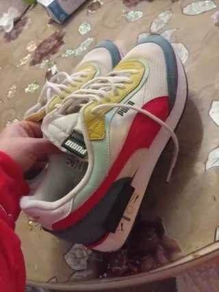 Zapatillas deportivas Puma con un diseño moderno y llamativo. - Combinación de colores vibrantes. - Cierre con cordones. - Suela de goma para mayor agarre.