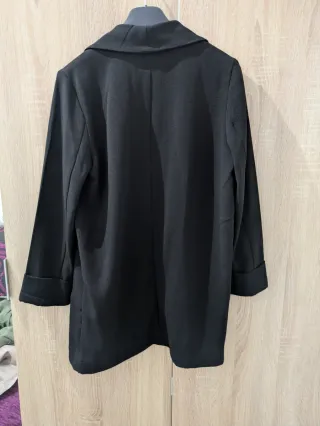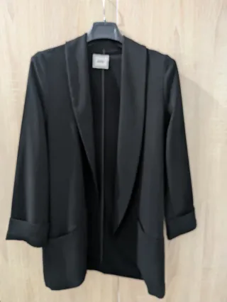 Elegante blazer negro con un diseño moderno y versátil. - Corte abierto. - Mangas enrolladas. - Bolsillos frontales.