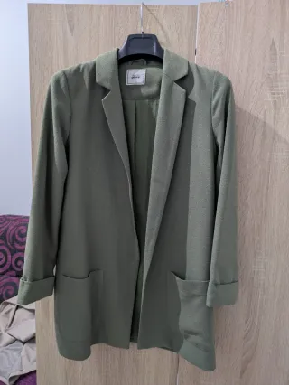Blazer elegante de color verde oliva. Un básico versátil para cualquier ocasión. - Diseño abierto. - Bolsillos frontales. - Puños enrollados.