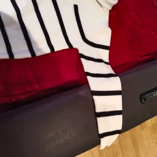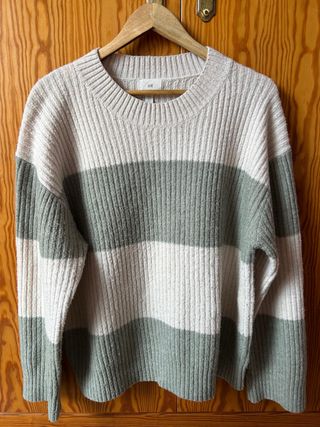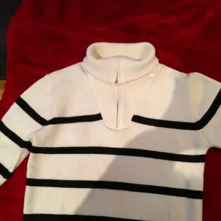 Jersey de punto con un diseño original de rayas. Da talla - Cuello alto con cremallera. - Mangas largas. - Tejido suave y cómodo.