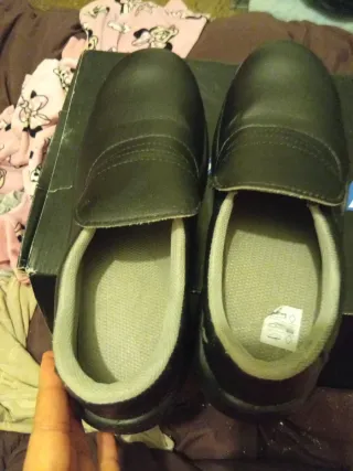 Zapatos de trabajo cómodos y resistentes. - Material exterior de cuero sintético. - Diseño slip-on para mayor facilidad. - Suela antideslizante.