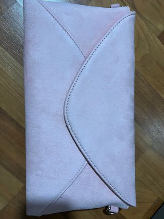 Elegante bolso de mano o cartera en ante de color rosa nude. Su diseño tipo sobre lo hace un accesorio versátil. Doble asa incluida: largo de hombro y correa de mano. A estrenar. - Material: Ante - Color: Rosa nude - Tipo: Bolso de mano / Cartera