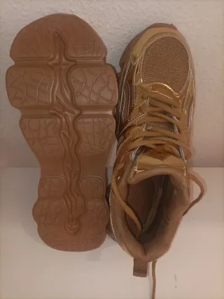 Zapatillas deportivas de color dorado, perfectas para un look moderno. Están a estrenar. - Diseño llamativo. - Cierre con cordones. Calzan como un 43